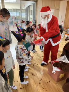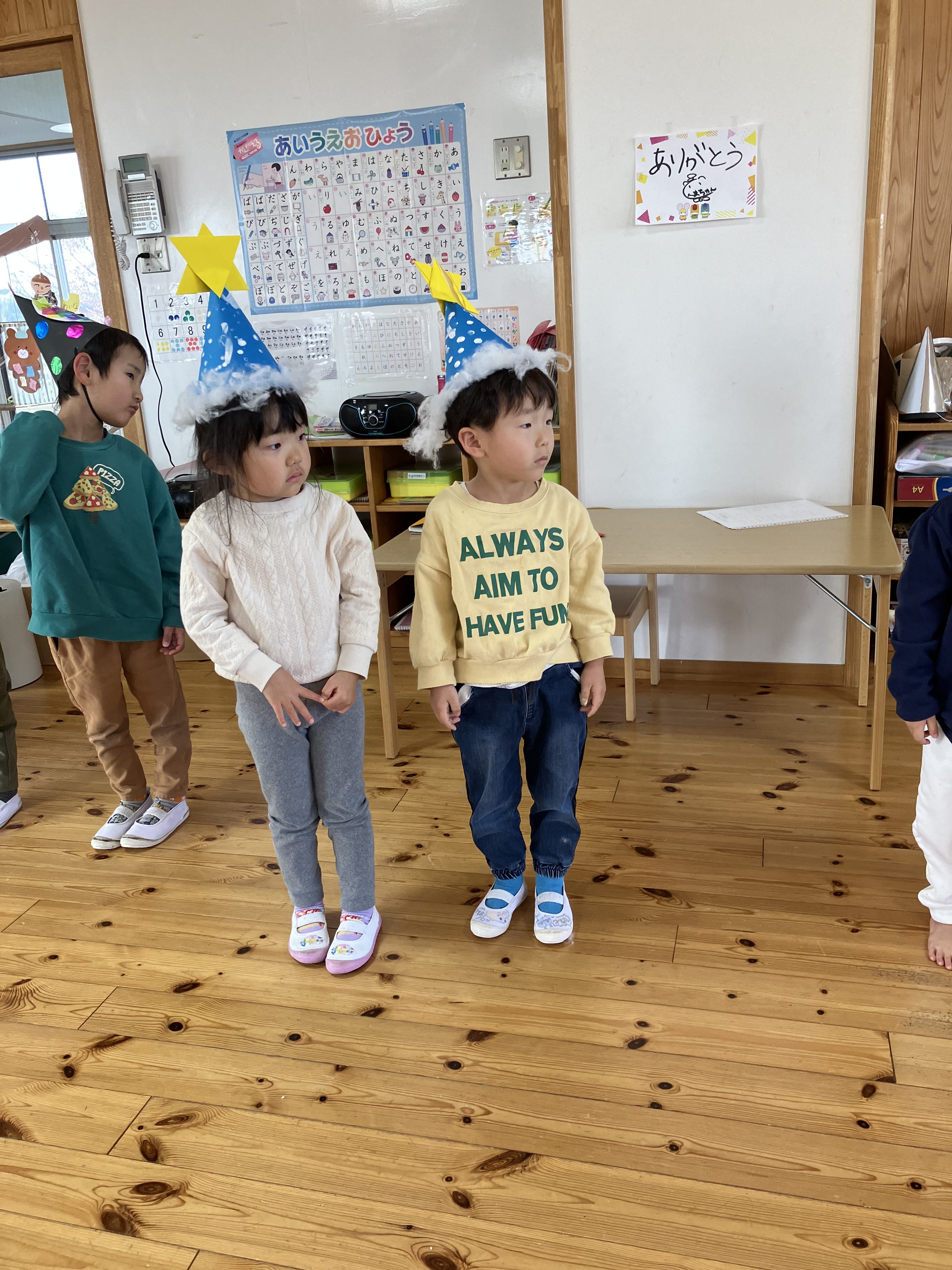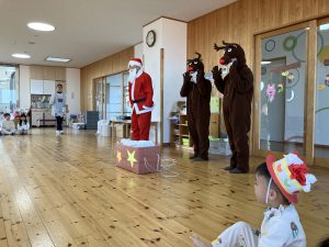 🎄クリスマス会🎄 2025年12月30日 ゆたか第2保育園のブログ 12月23日に子ども達が楽しみにしていたクリスマス会でした🎄 各クラスで作ったクリスマス会の帽子をみんなに紹介しました♪可愛い帽子ができましたね! 先生の出し物も見ました! みんな静かにじっと見ていましたよ♪ そしていよいよサンタさんとトナカイさんが来てくれました🎅 手を振って大喜び!! 一緒に赤鼻のトナカイを歌いました✨ サンタさんからプレゼントをもらいました🎁 みんなちゃんと「ありがとう」とお礼も言えましたよ😊 楽しいクリスマス会でしたね🎄 古い記事へ 一覧へ 新しい記事へ